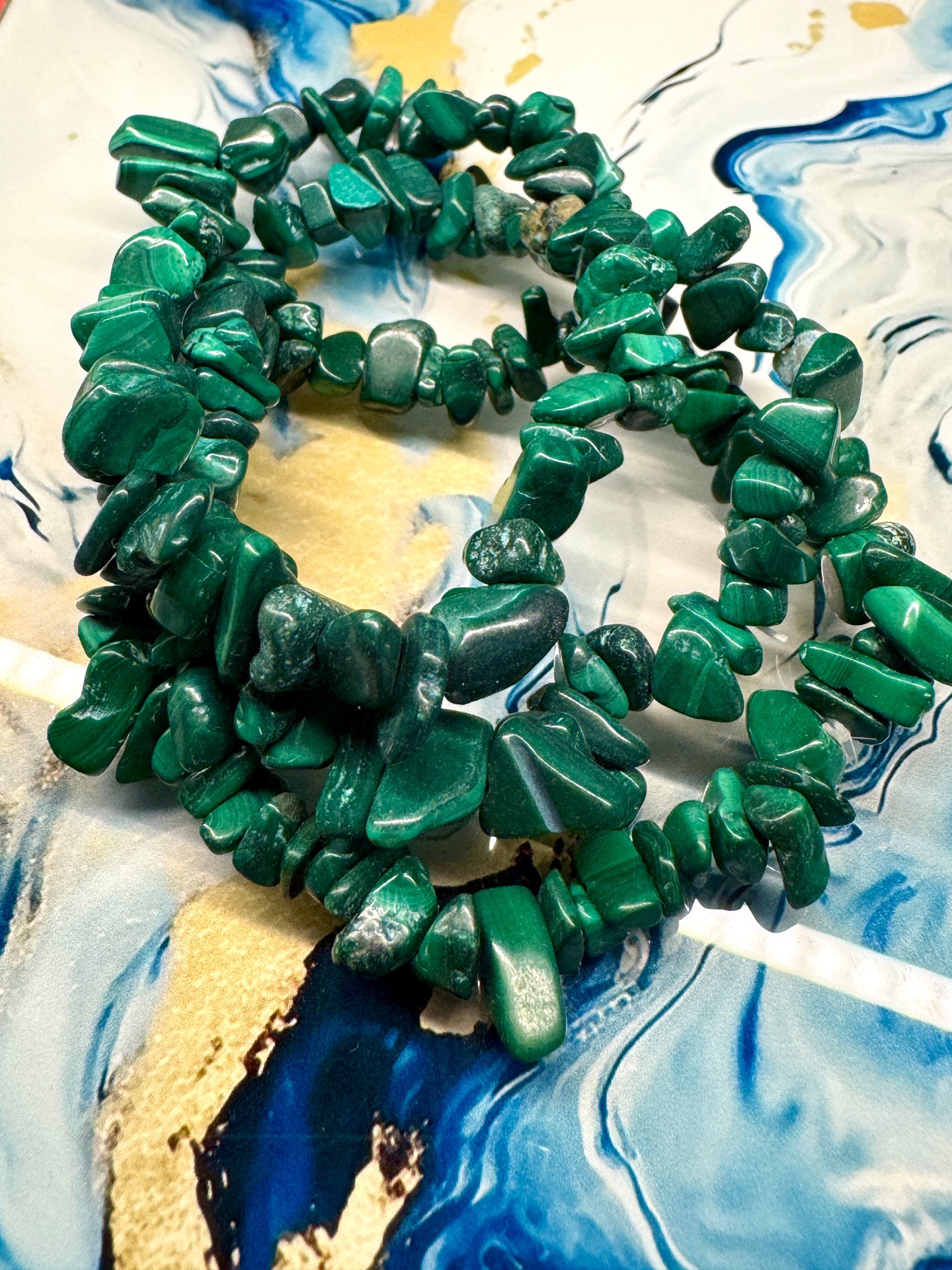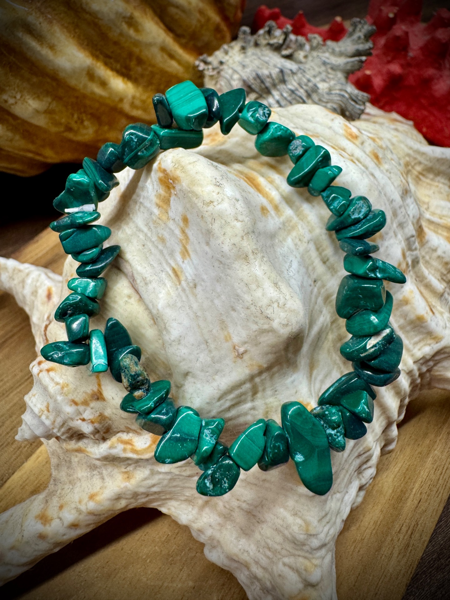 Otvor svoje srdce liečivej sile Matky Zeme. Tento jedinečný náramok z pravého sekaného malachitu v sebe nesie vibráciu hlbokej regenerácie, uzdravenia a lásky k sebe samému. Každý kamienok pôsobí ako malý strážca tvojho vnútra – pomáha uvoľniť staré bolesti, odpustiť minulosti a privítať nové začiatky s dôverou.